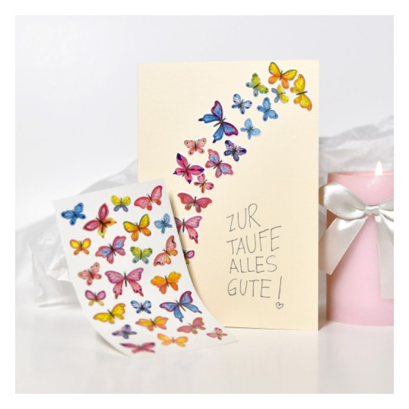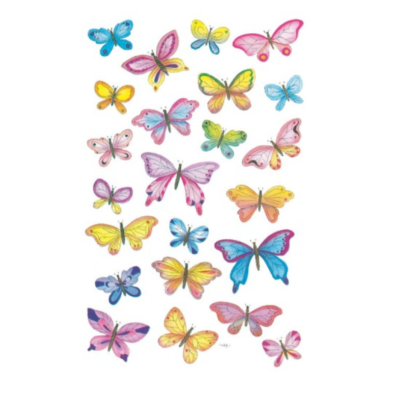 • Dekoratīvas papīra uzlīmes tauriņu formās. Ļaujieties radošumam ar šīm fantastiskajām uzlīmēm! Ideāli piemērotas vēstuļu, ielūgumu, dāvanu dekorēšanai, kā arī citām radošajām aktivitātēm.