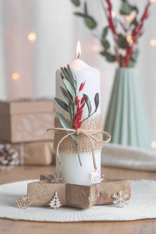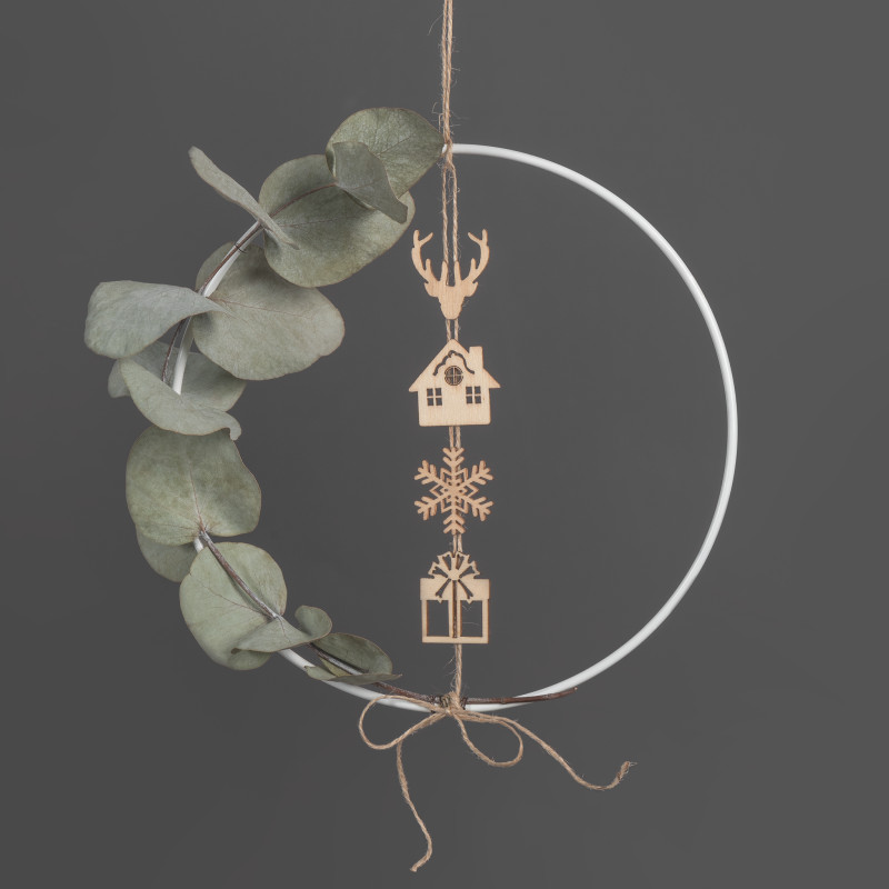 Koka dekoru komplekts ar dažādiem ziemassvētku tematikas dekoriem, koka kastītē ar nodalījumiem. Komplektā iekļautie dekori, redzami pirmajā attēlā. Lieliski piemērots dažādu rokdarbu veikšanai, kā arī dekorāciju veidošanai, figūrām ir iegriezumi, kas ļauj tās uzvērt uz auklas.