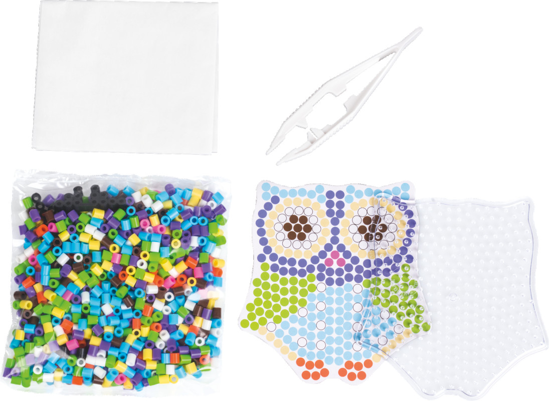 Gludināmo pērlīšu komplekts ar pūcītes formas pamatni. Komplektā iekļauto pērlīšu skaits ir paredzēts divu modeļu izgatavošanai. Komplektā ietilpst pērlītes, pincete, pamatne jeb šablons, kā arī gludināmais papīrs. Lietošana - ar pincetes palīdzību izvietojiet pērlītes uz pamatnes un pārklājiet tās ar gludināmo papīru. Kad gludeklis ir uzkarsis līdz vidējai temperatūrai, tad ar vieglām kustībām, caur gludināmo papīru sakausējiet pērlītes. Ļaujiet atdzist un tad noņemiet gludināmo papīru, ja nepieciešams, kausēšanas procesu var atkārtot arī no otras puses.