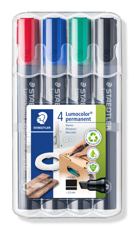 - Komplektā 4 krāsas: melns, zils, zaļš, sarkans.