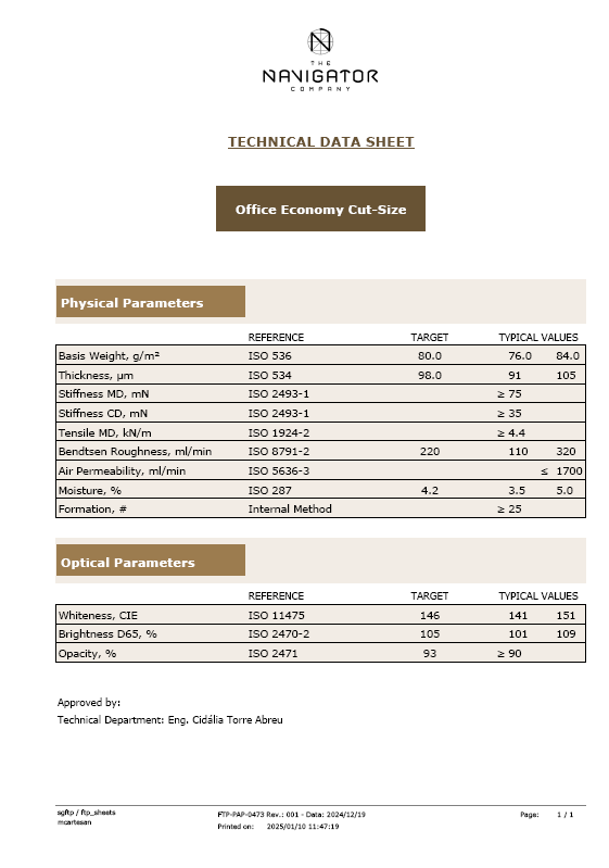 Piemērots abpusējai drukai, paredzēts darbam ātras darbības kopētājos, lāzerprinteros, tintes printeros, faksa aparātos. Rūpnīca sertifcēta atbilstoši FSC un PEFC prasībām.
