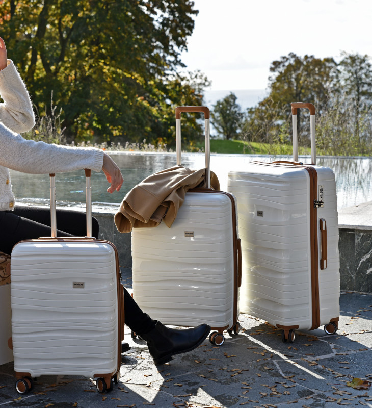 Komplektā ietilpst trīs dažādu izmēru koferi, kas ļauj ērti pielāgot bagāžu ceļojuma ilgumam.
