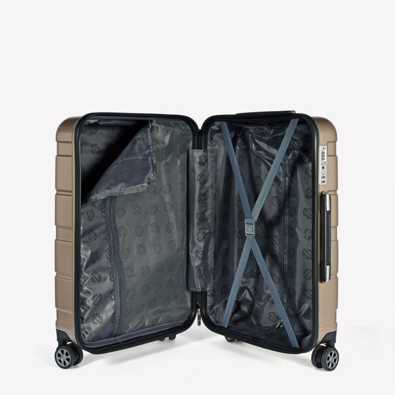 Koferi izgatavoti no augstas kvalitātes ABS/PC plastmasas, kas ir īpaši izturīga pret triecieniem un mehāniskiem bojājumiem, vienlaikus saglabājot nelielu svaru. Virsma ir noturīga pret skrāpējumiem, palīdzot saglabāt estētisku izskatu arī pēc vairākiem ceļojumiem.