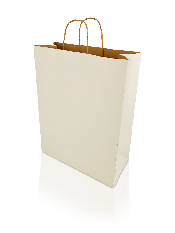 Papīra maisiņš 14x8x21cm ar vītiem rokturiem balts